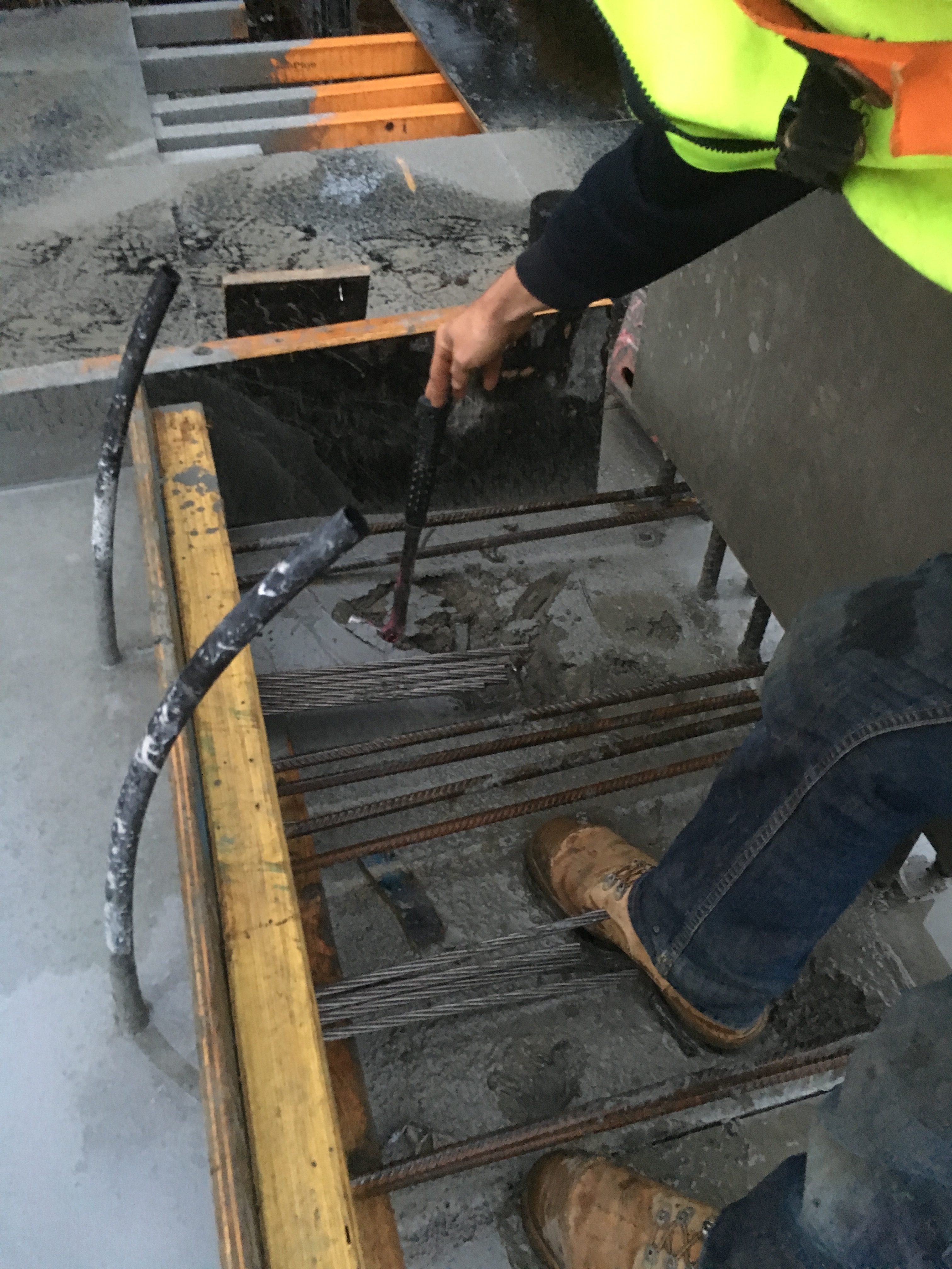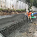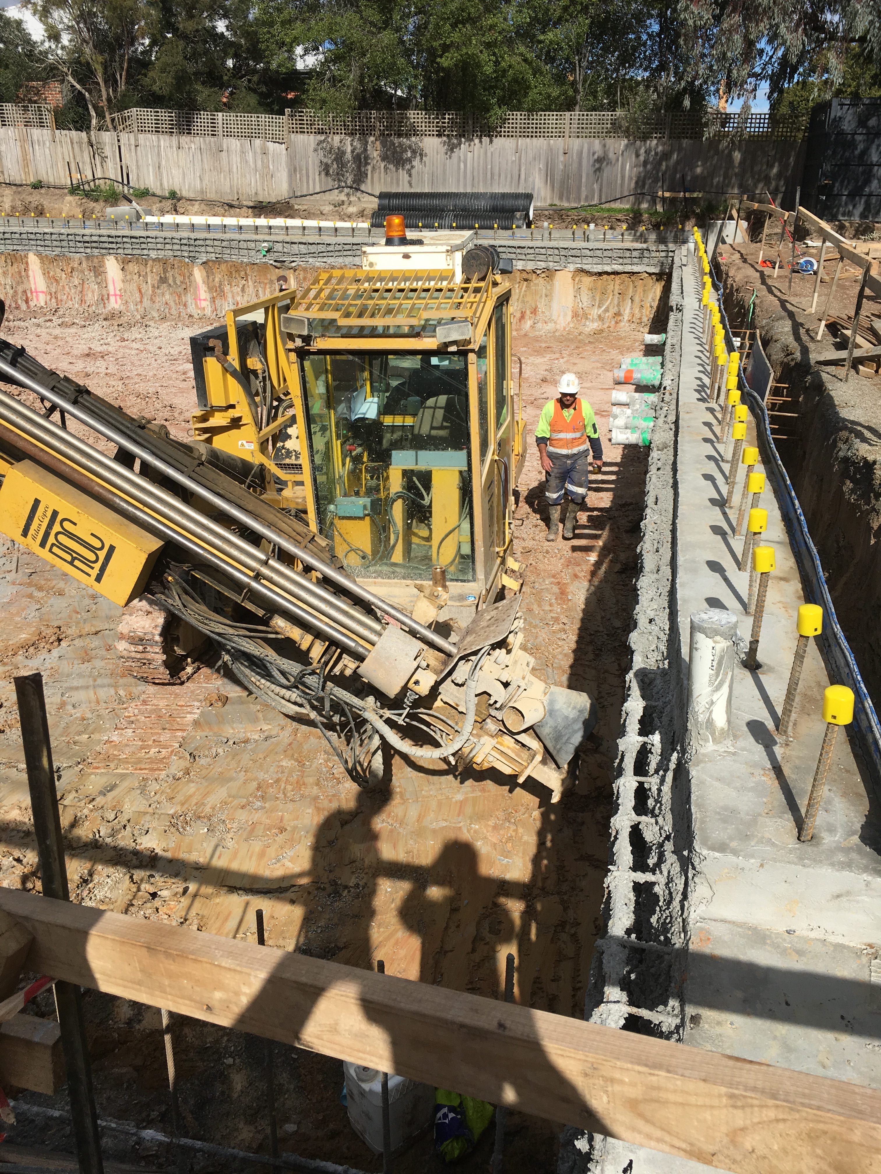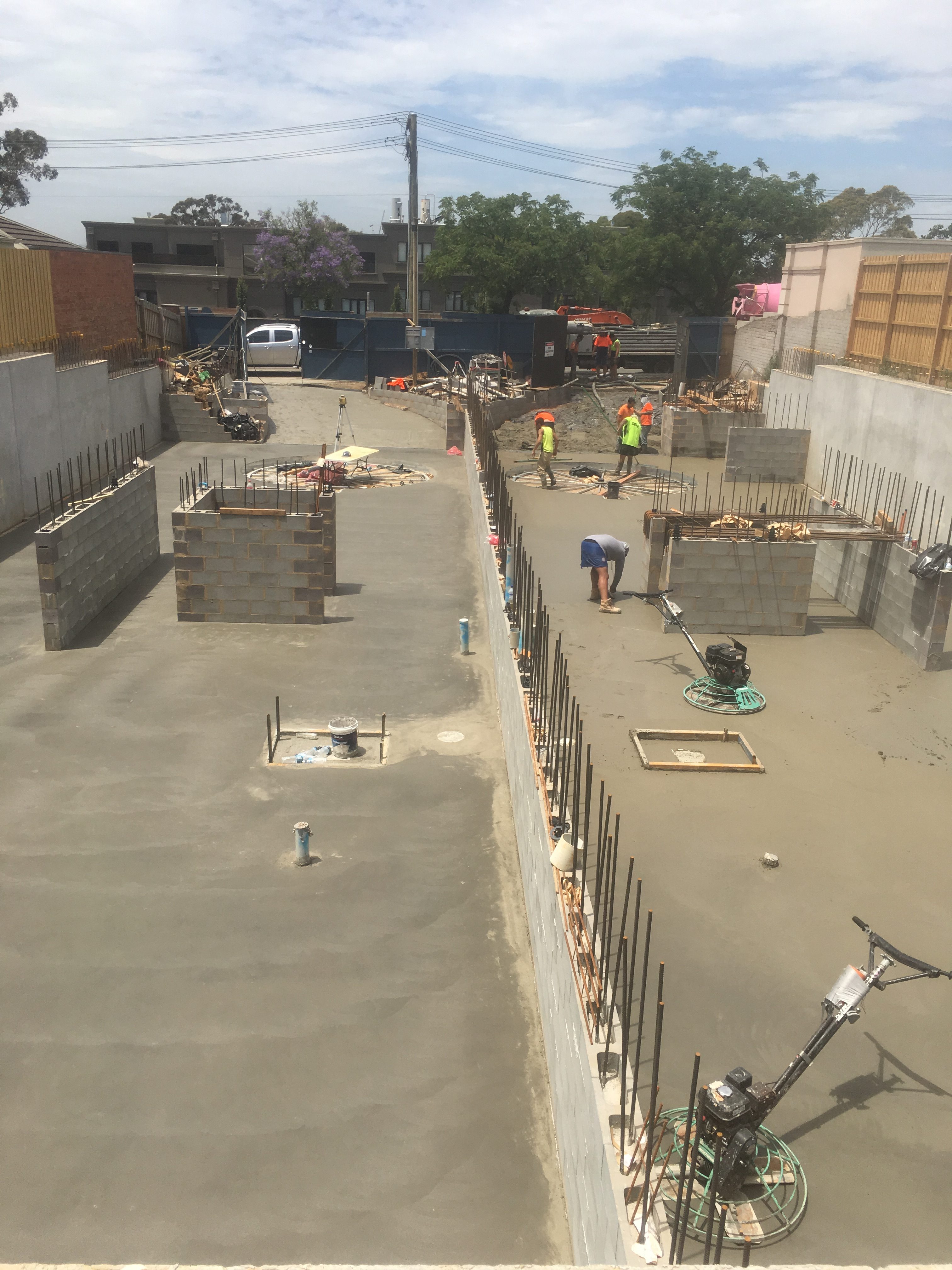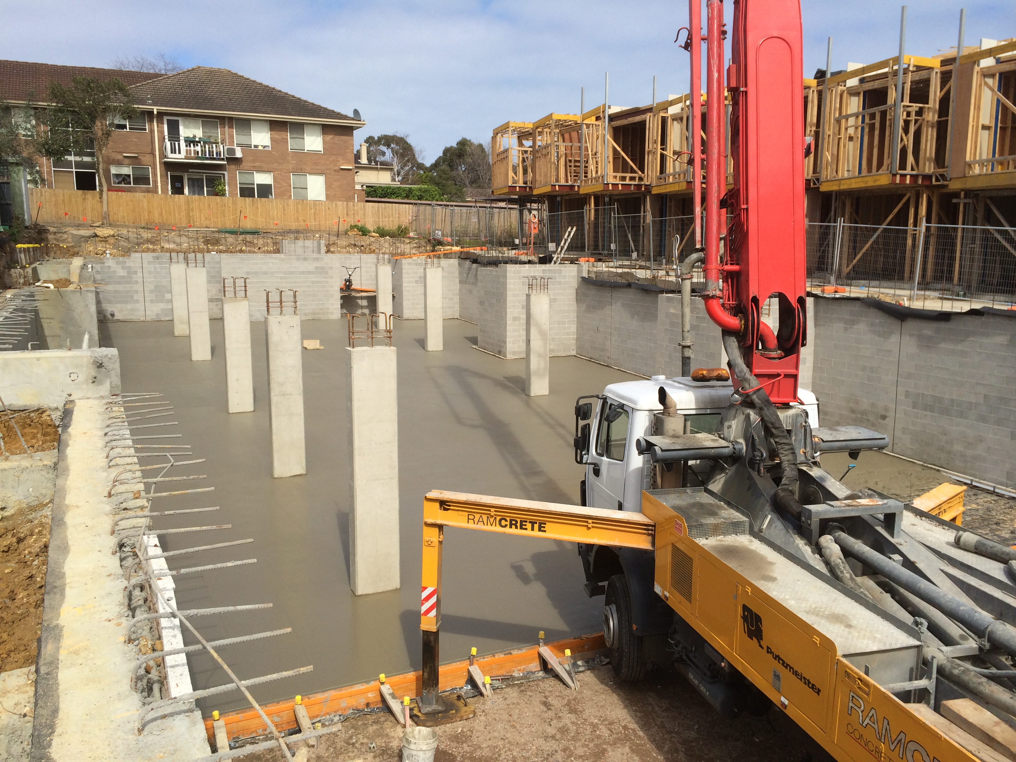 sub-base preparation, application of structural Geomap, board piers, concrete footings, concrete stairs, infil slabs suspended slabs and beams, loading dock and concrete driveway and carpark